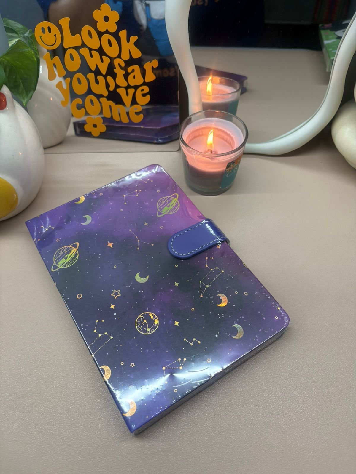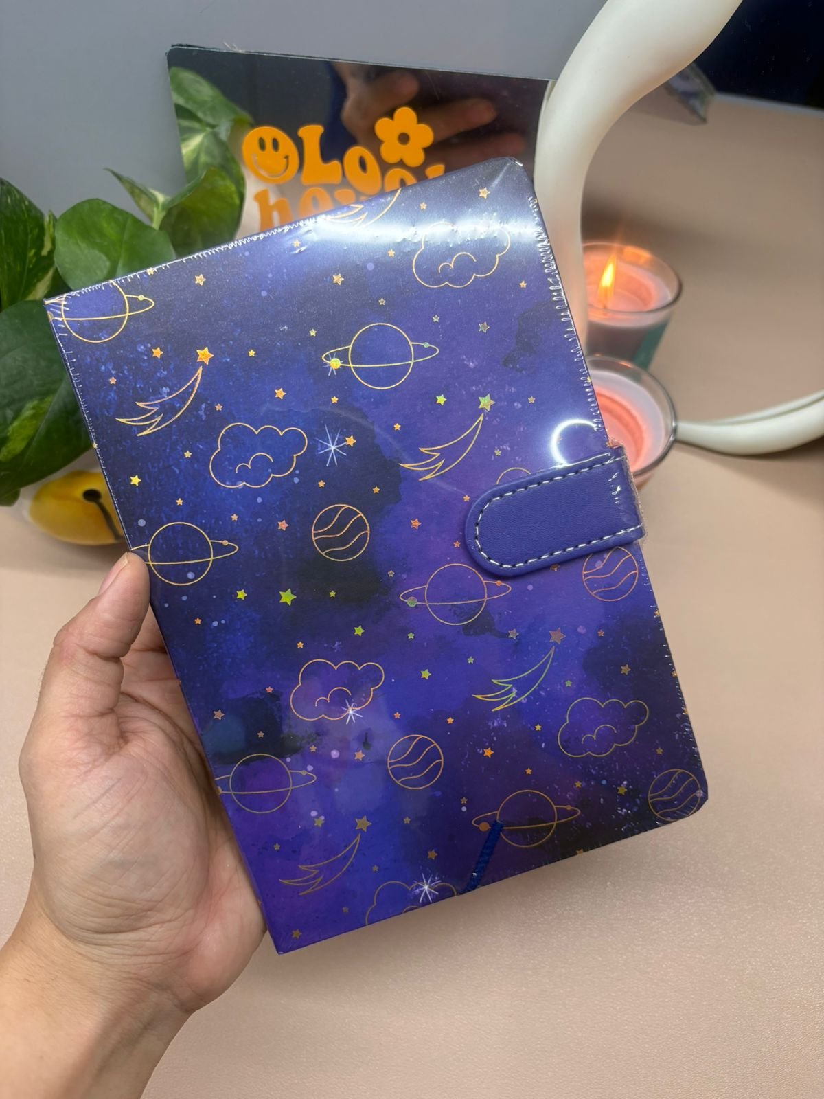 Bring a touch of creativity to everyday writing with this stylish thick ruled notebook featuring a beautiful blue space-themed print with planets, stars, and clouds. Designed with neatly ruled pages, it is perfect for note-taking, journaling, school work, office use, or daily planning. The sturdy magnetic closure keeps the notebook securely shut, protecting pages and making it convenient to carry anywhere. Its thick page count offers long-lasting use, while the elegant cosmic design makes it appealing for kids, teens, and stationery lovers alike. A practical and attractive choice for school supplies, gifting, or personal use