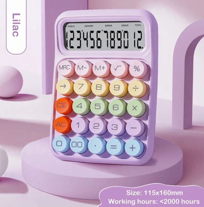 A cute pastel calculator designed to make everyday calculations fun. Compact, lightweight, and perfect for desks, school bags, or study corners.